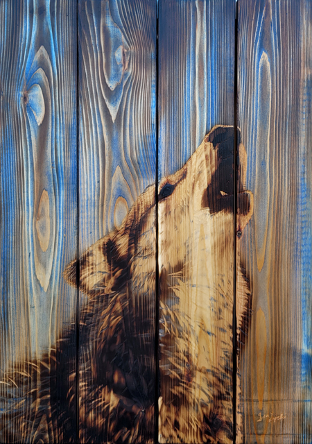"Calling Out" - Burned, Carved, and Stained Wood-- 2022