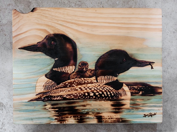 "Loon Study" - 9 x 12" ~ Burned and Carved Wood - 2022